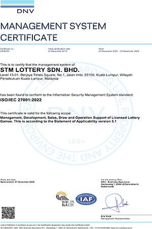 STM Lottery Sdn Bhd has attained the World Lottery Association Security Control Standard:2024 (WLA-SCS:2024) certification.